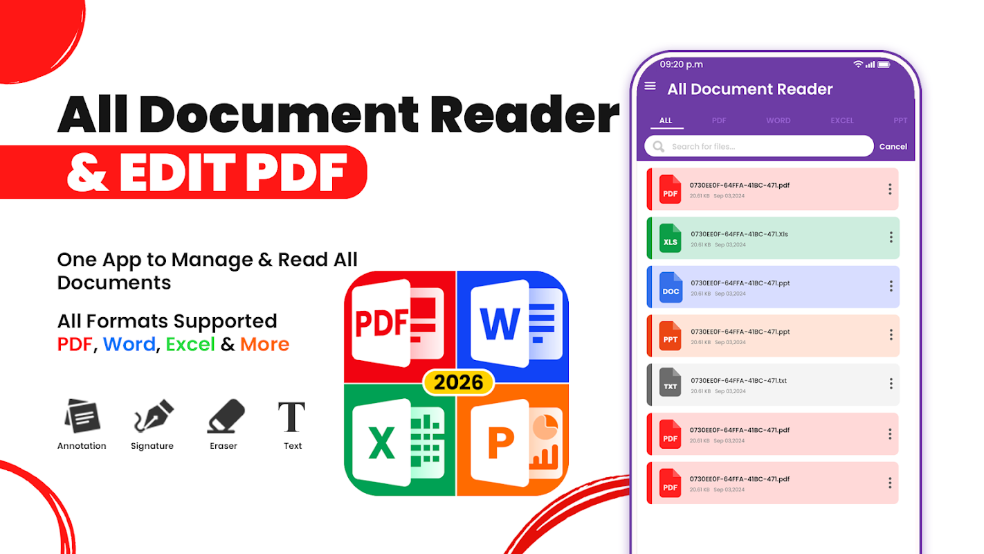 All Document Viewer and Editor: Provides full support for multiple formats—making it a true All Document Reader & Edit PDF.