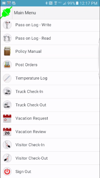 - Ability to view the work Schedule, Pass On Logs, Incident Checklists, Post Orders, and Policy Manuals.
