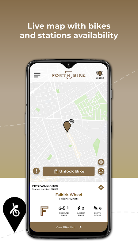 The official Forth Bike Mobile App is your ultimate tool to bike around Forth Valley. Use the Mobile App to check bike availability at each station as well as your profile and previous routes. You can even unlock a bike!