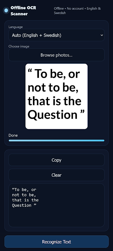 Whether you’re digitizing receipts, transcribing notes, or capturing text from books, Offline OCR Scanner makes it quick, private, and easy.