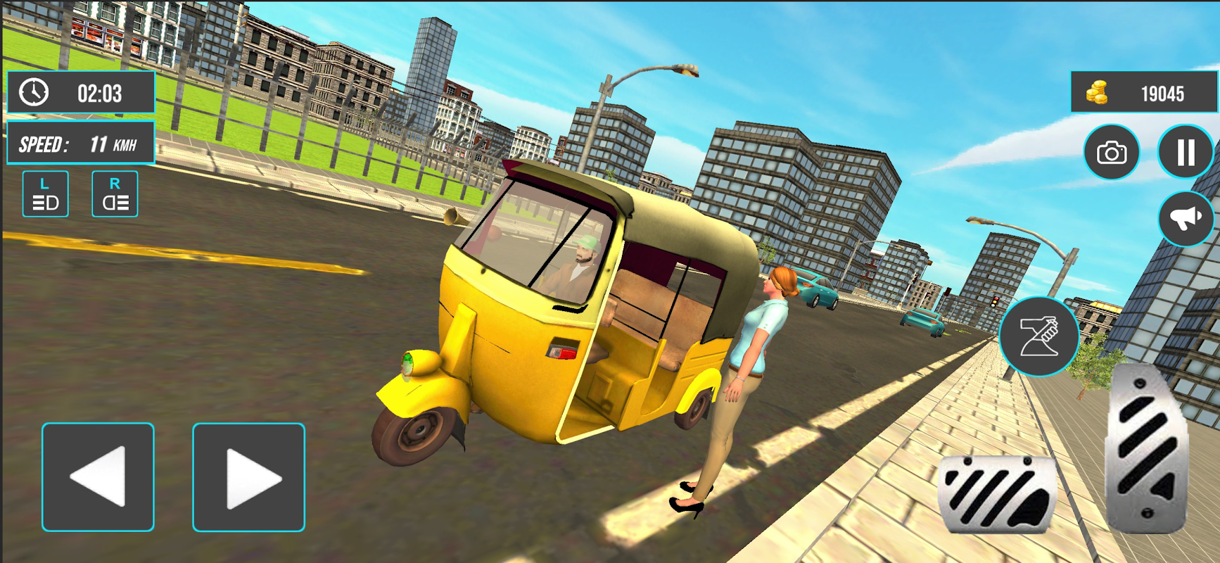 Drive tuk tuk auto rickshaw in modern city, best tuk tuk driving game.