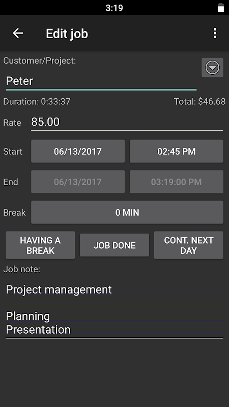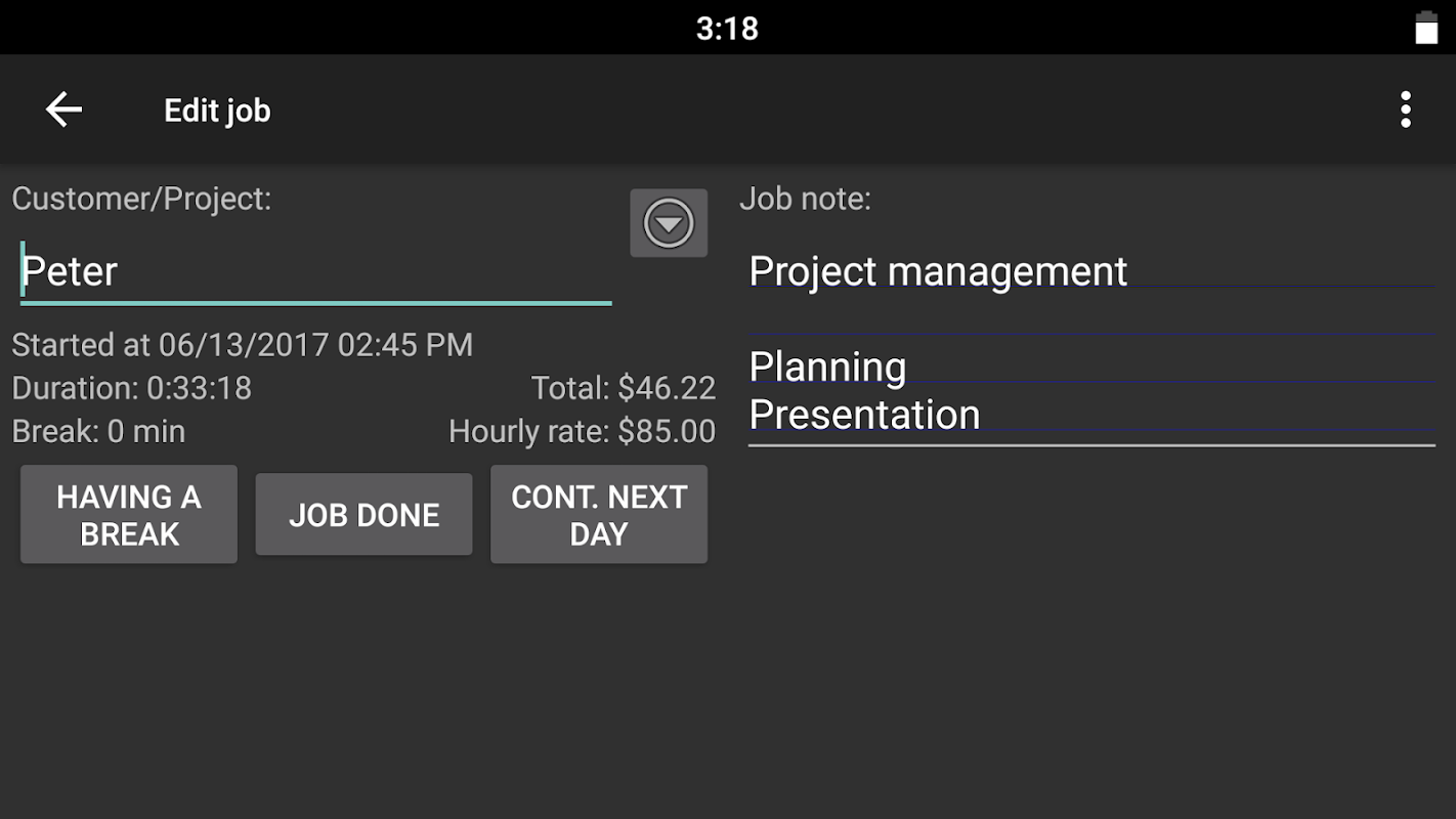 Timesheet tracks the times you spend on your various jobs. Track "live" or manually. See total duration, costs per customer/project.