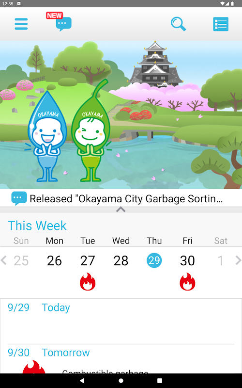 Okayama City has released an app which includes information related to garbage, such as the garbage collection schedule, the procedures for disposing of garbage, precautions to take when disposing of garbage, a garbage sorting reference, and frequently asked questions. You can check the information easily with your smartphone.