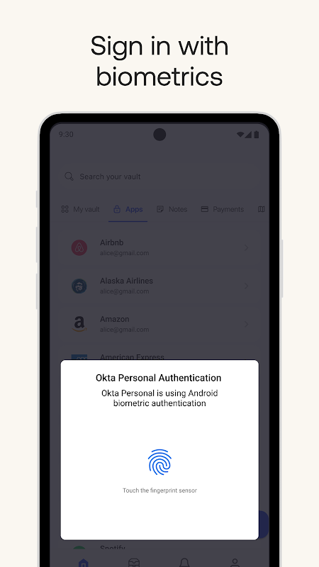 Your passwords, your way. Okta Personal syncs securely across all your devices, so your login information is available whenever and wherever you need it. No more juggling passwords on different devices!