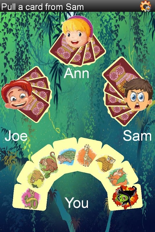 - Each player gets ten cards. If you have any pairs of cards (two cards with identical animals), click both cards to discard them.