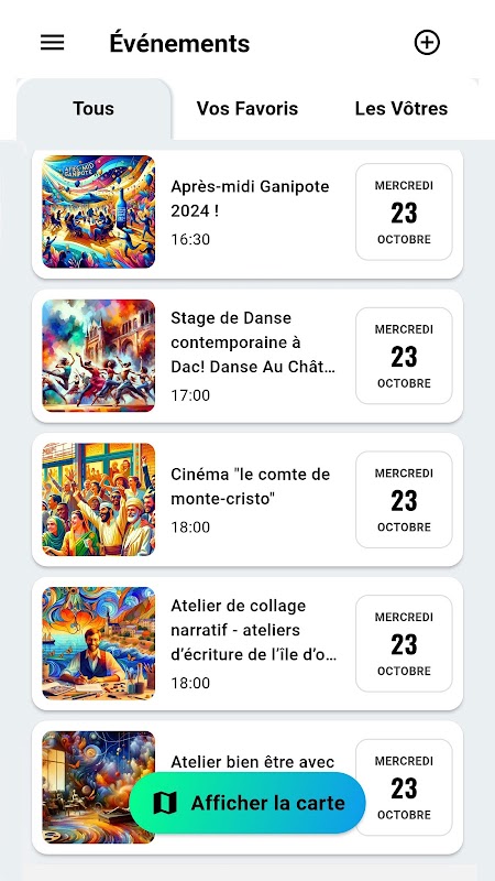 - Mur des annonces locales dans le menu - Possibilité pour les PRO de choisir ou regénérer des images pour leurs événements ou fiche entreprise - Affichage de l'image de la fiche entreprise dans les annonces locales - Suivi des organisateurs