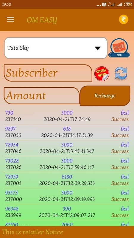 OM Recharge App for All India Mobile and DTH operators and it works with more multirecharge survice provider like OM Recharge Recharge and many more.