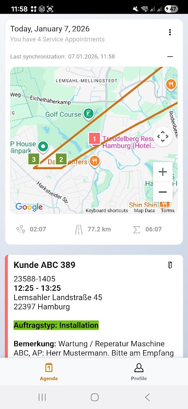OMD Mobile is an online/offline mobile workflow application, providing all functionality your Field Service teams require to support their activities. OMD Mobile captures time stamps, mileage, material and scan codes. Navigate or call the customer with a push on a button, let the customer sign-off on the touchscreen of your device..
