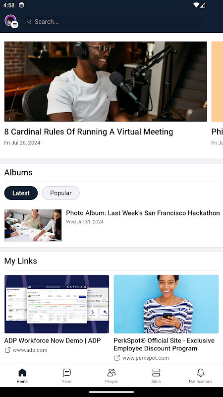 Connect with coworkers across the organization on special interest sites