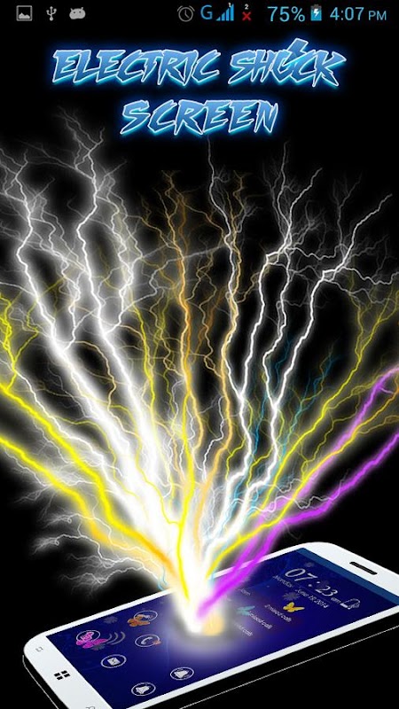 You can touch the mobile phone screen anywhere to generate a electric sparks with real sound effect and vibration. Show your friends the electric lighting effect. Experience the different electric shocks which spread like the bolt of lightning on your smartphone screen.