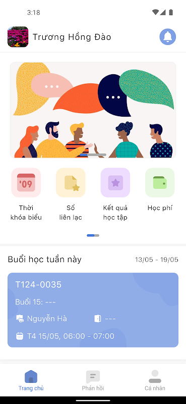 The application provides solutions to meet all needs in managing, updating information as well as interacting during the learning process, including: Viewing and editing personal information, Tracking class schedules, Updating electronic contact books, Looking up payment history, Viewing information about personal grade books, Accumulated points, Class photo library and quickly grasping the latest notifications on the application. In addition, online connection is easy when you Send feedback and chat with the Academy's professional customer care team.