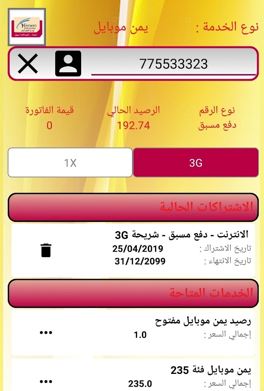Charge Balance and offers for all telecom companies in Yemen