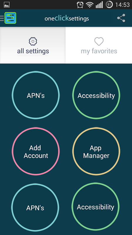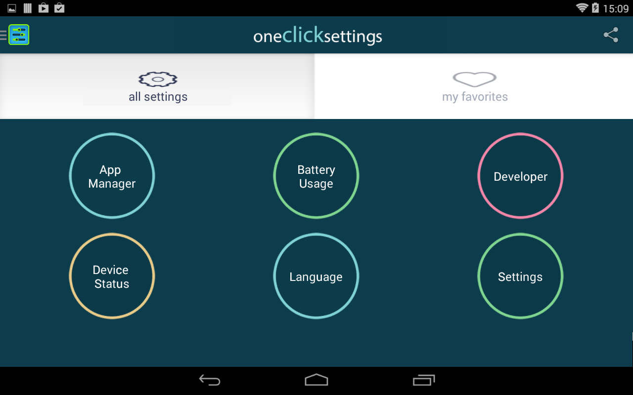 One Click Settings App. All your device settings in one place