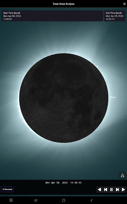 + Eclipse Simulator: Step into the shoes of an astronomer and simulate the eclipse from your own location or any spot on Earth. Use time controls to manipulate the eclipse, experiencing it from start to finish at your pace.
