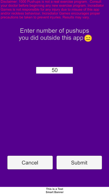 Disclaimer: One Thousand Pushups is the name of this app. It does not mean you should do one thousand pushups in one session. Consult your doctor before beginning any exercise program. Results may vary.