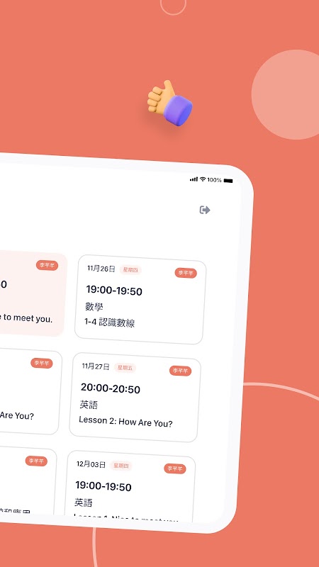 無論何時何處,一機在手即可進入線上教室,師生一對一專屬課程,開始 OneClass 的線上學習,完整課堂互動功能,如同面對面教學。