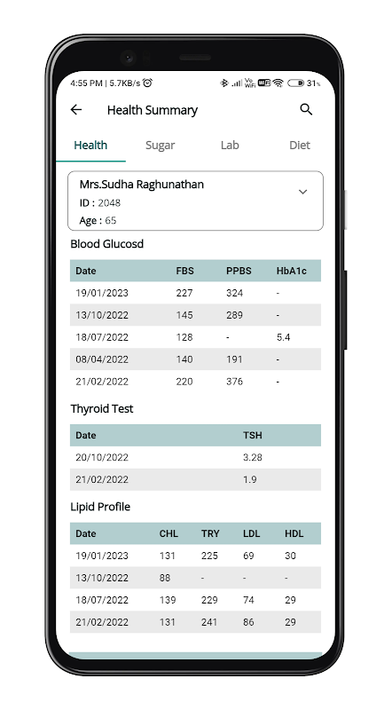 2) Health @ glance - using this feature the user can view his/her latest medical data like prescription, advice and important lab result trends