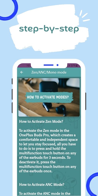 in the oneplus buds pro guide application, we have collected photos that explain the