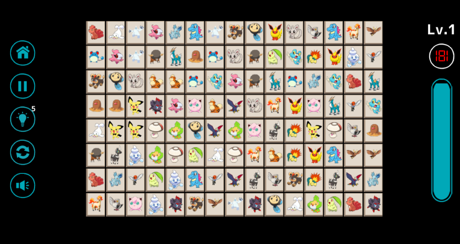 The Classical Onet Connect Game with Pikachu and Animals and Food Matching Pairs