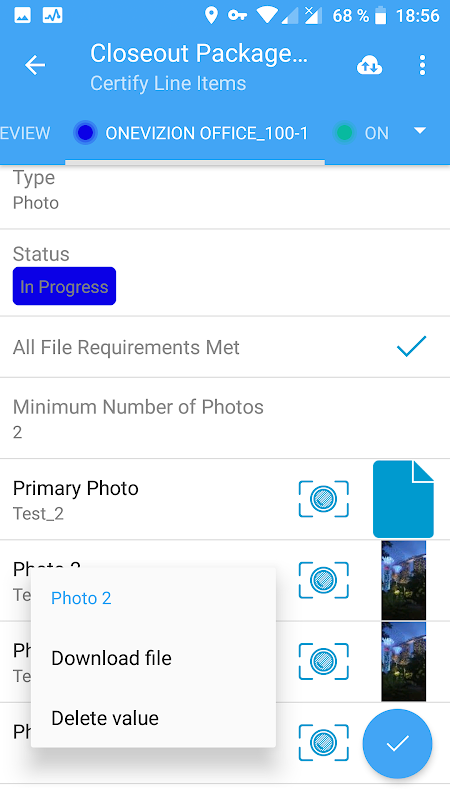 The OneVizion Mobile App is a powerful Field Data Collection tool developed as a tightly integrated companion to business solutions powered by the OneVizion Platform. The App enables properly credentialed users in the field to securely and efficiently gather project-specific data such as readings, photos, field notes, certifications, and drop-down selector values. Whether the project goal is properly documenting new construction, asset modifications, equipment maintenance, or site selection, the App empowers field personnel to rapidly collect the right information and instantly publish it to the cloud where it is available to all other users for oversight, instant feedback back out to the field, verification, and acceptance. The App defaults to an online mode whenever your device has a data connection, but also has a full offline capability for locations with no wireless data access.