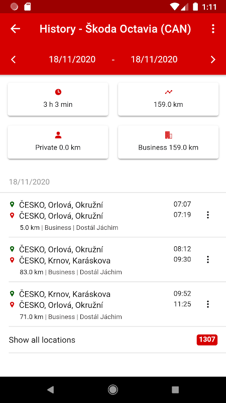 - list of trips (logbook),