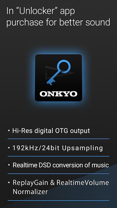 Enjoy stunning audio quality anywhere you like by adding an Onkyo DAC-HA200 or DAC-HA300, Pioneer XPA-700 D/A Converter and Headphone Amplifier to enable a direct-digital connection to your AOA 2.0 (Android Open Accessory)-compatible Android device via USB cable. OTG (On The Go) cables facilitate a digital connection to USB audio-compatible external devices—simply purchase our Unlock Application and update to the full-featured version of Onkyo HF Player for Android to enable Hi-Res Audio output.