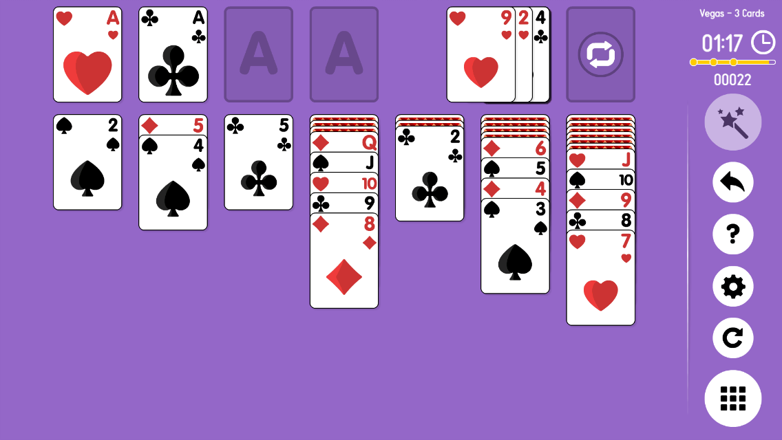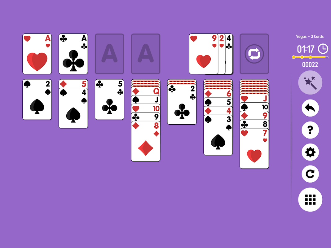 Some people think that any combination of solitaire "Klondike" is possible to do but it is not like that. In fact, not all combinations converge. We have developed an algorithm that allows you to generate a deck of cards so that as a result, the solitaire converges. We are pleased to present our collection of solitaire "Klondike". We guarantee that all our solitaire games have a solution. If you cannot solve the puzzle, there is an opportunity to use the help function during the game. You can check all the moves that lead to a correct result and analyze the moves where you made a mistake.