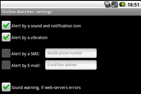 This client application for a mobile phone can alert you by sound, vibration, send SMS or E-mail or any other way (you may order).