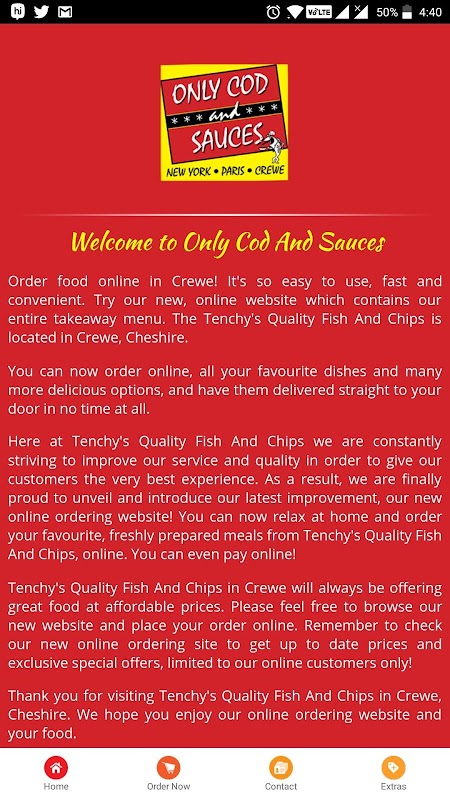 Thank you for visiting Only Cod And Sauces in Crewe, Cheshire. We hope you enjoy our online ordering website and your food.