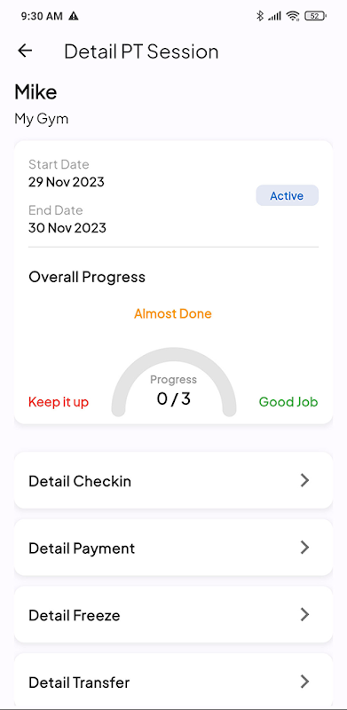 View-Only Mode: Currently, you can view your data with future updates planned for more interactive features, including class bookings.