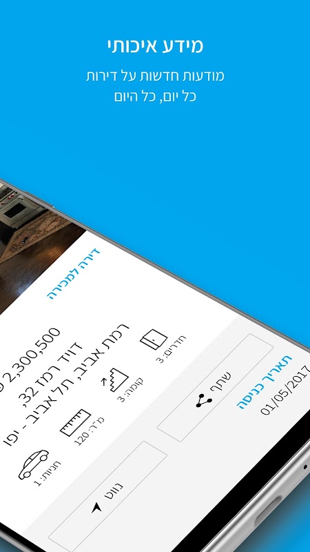 • Navigate - In each property’s add there is a navigation button, that by pressing it, Waze will show you your way to the property.