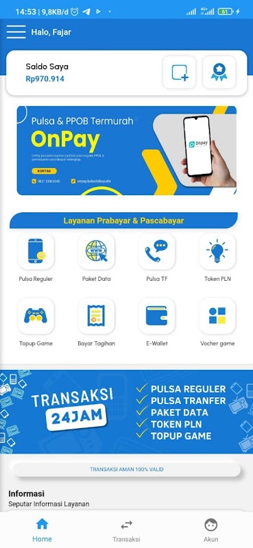 Onpay application for buying and selling cheap pulses, data vouchers, PPOB and E wallet