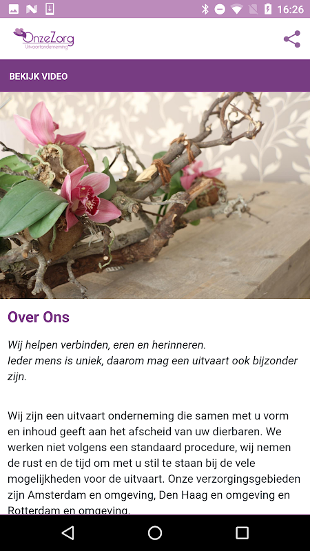 Onze Zorg is een uitvaart onderneming die samen met u vorm en inhoud geeft aan het afscheid van uw dierbaren. We werken niet volgens een standaard procedure, wij nemen de rust en de tijd om met u stil te staan bij de vele mogelijkheden voor de uitvaart. Onze verzorgingsgebieden zijn Amsterdam en omgeving, Den Haag en omgeving en Rotterdam en omgeving.
