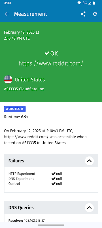 You can check whether and how websites and instant messaging apps are blocked. The network measurement data you will collect may serve as evidence of internet censorship.