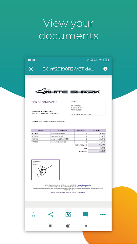 • Approve your invoices, quotes, purchase orders and other files through workflows