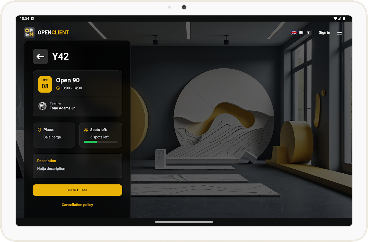 Open Client app allows you to discover gyms, yoga and pilates studios, dance and martial arts schools around you.
