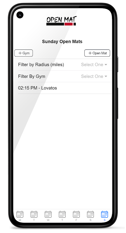 This app allows you to find the nearest BJJ open mat based on your location. You may filter by radius (miles) or by gym.