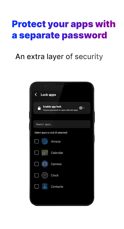 Privacy & Security: Protect sensitive apps with a separate password, providing an extra layer of security.