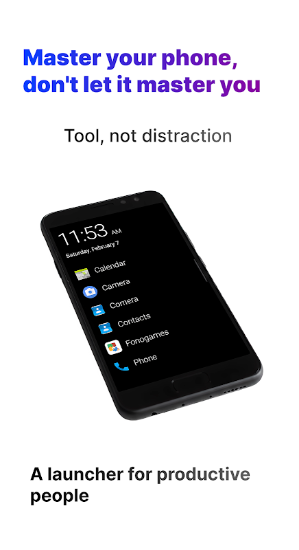 Unlike traditional launchers that clutter your screen, we focus on radical minimalism. We transform your interface into an organized, text-based list, allowing you to use what you need and get back to the real world.