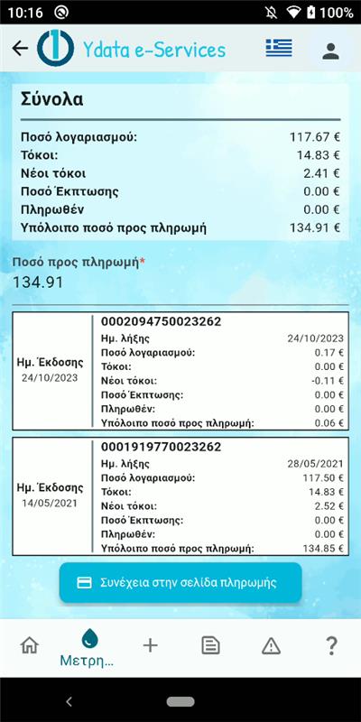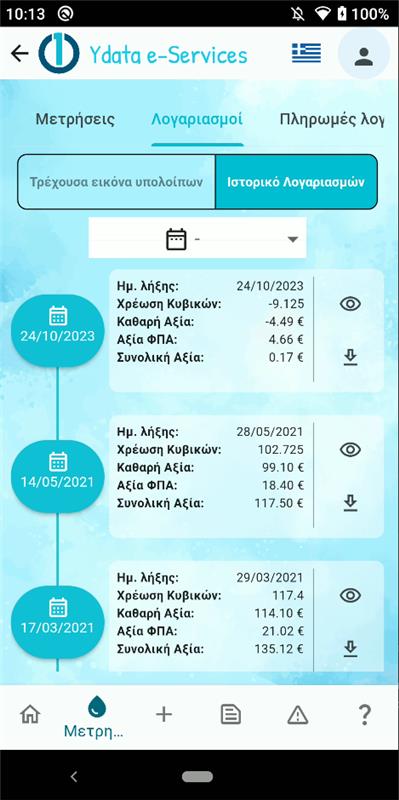 Εφαρμογή που προσφέρει πρόσβαση σε λογαριασμούς, πληρωμές και αιτήματα ύδρευσης.