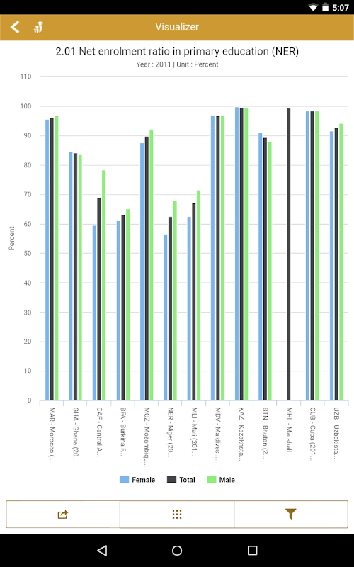OpenEMIS Visualizer lets you analyze and visualize indicator-based data by area, time period and source in tables, graphs and maps. OpenEMIS Visualizer has a user- friendly interface that allows decision makers, education planners, field workers, NGO’s and researchers to easily analyze data. With OpenEMIS Visualizer the user can save and share visualization objects that can be easily integrated to presentations, brochures and/or other materials. OpenEMIS Visualizer turns data into information.