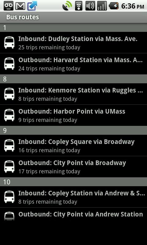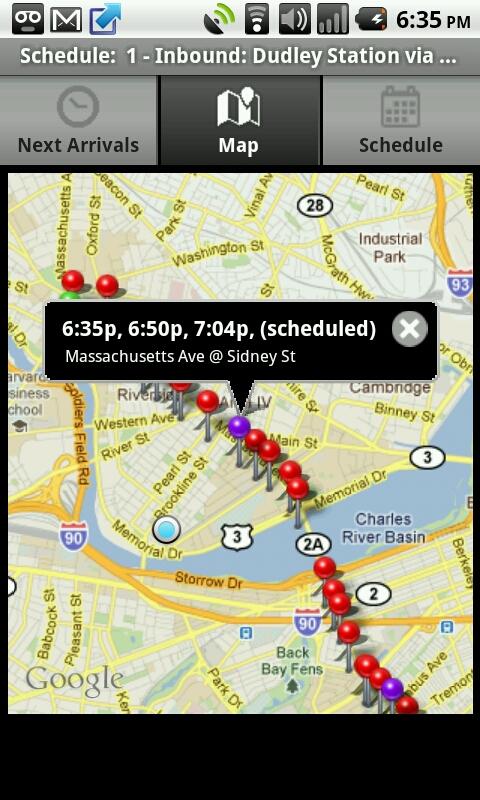 OpenMBTA is a free open source mobile app which provides transit schedule information for the Boston MBTA metro system. When available, real time schedule will be presented, highlighting the closest stop to your current location.