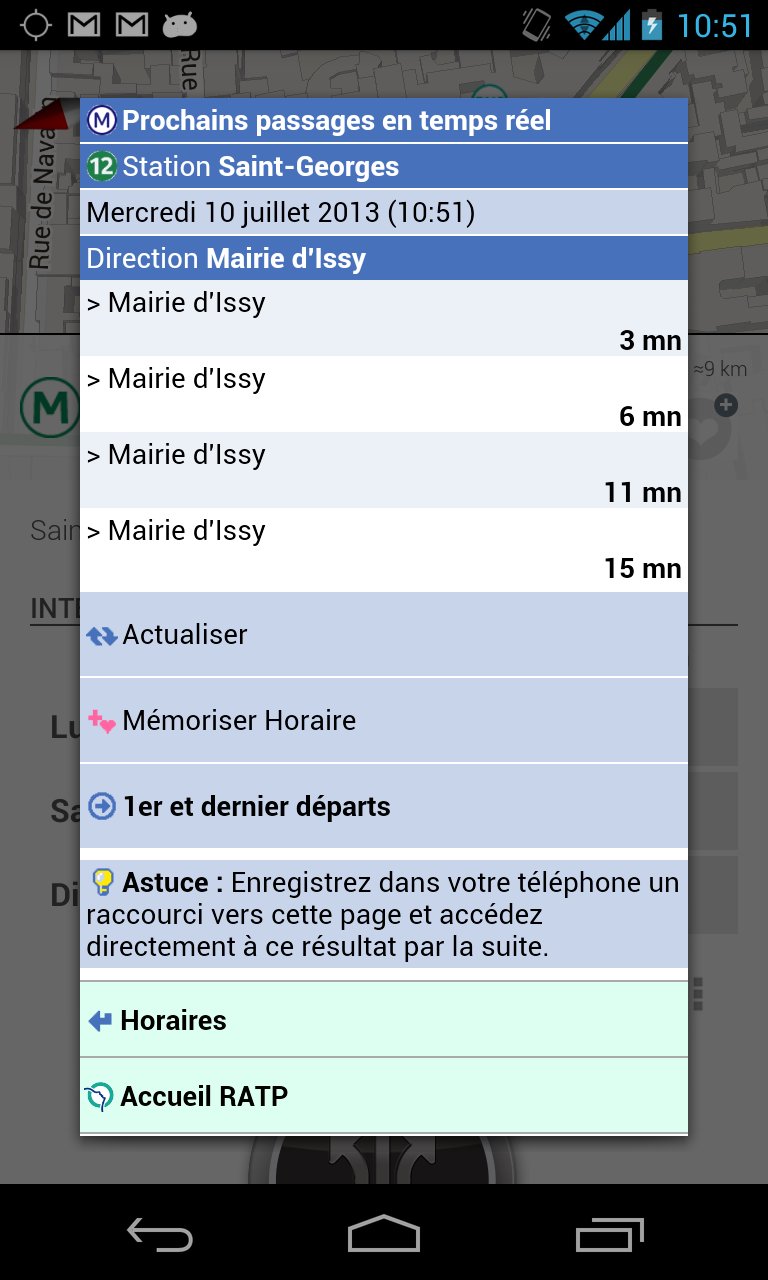 Un touch sur une station, et découvrez les fréquences de passage, les premiers et derniers horaires. Si la 3G est disponible, vous pourrez aussi découvrir les dates de passage en temps réel des 3 prochains bus, métros ou tramway.