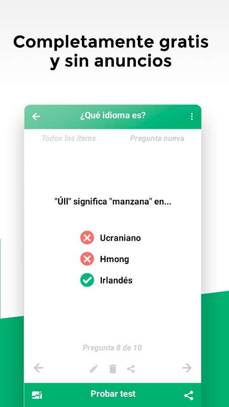 Haz cuestionarios a tu gusto: Escribe y edita tus propias preguntas tipo test con dos, tres o cuatro opciones de respuesta.