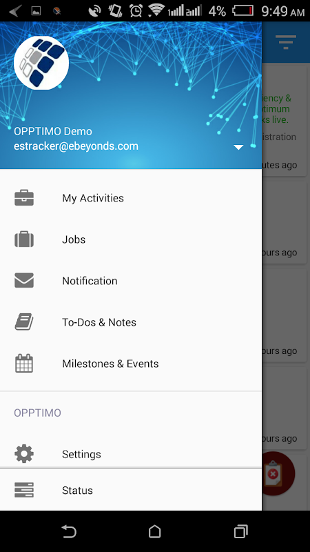 Of all the resources available to businesses today, time is perhaps the most valuable, because that all people in the business make the best use of time is crucial to its success. Given the sheer number of distractions people are constantly exposed to, visibility of the workforce - in terms of what projects people are working on, how much time do they spend on a particular task or a project? Whether people slack off is of paramount importance to the management. eBEYONDS OPPTIMO is a sophisticated tool that helps you track, compute or find out all these and a whole lot more. eBEYONDS OPPTIMO Mobile is a sophisticated android app that is synchronized with and depends upon the platform. OPPTIMO Mobile enabled on your smart-phone, it’s a snap for you to keep track of your employee performance and project progress.