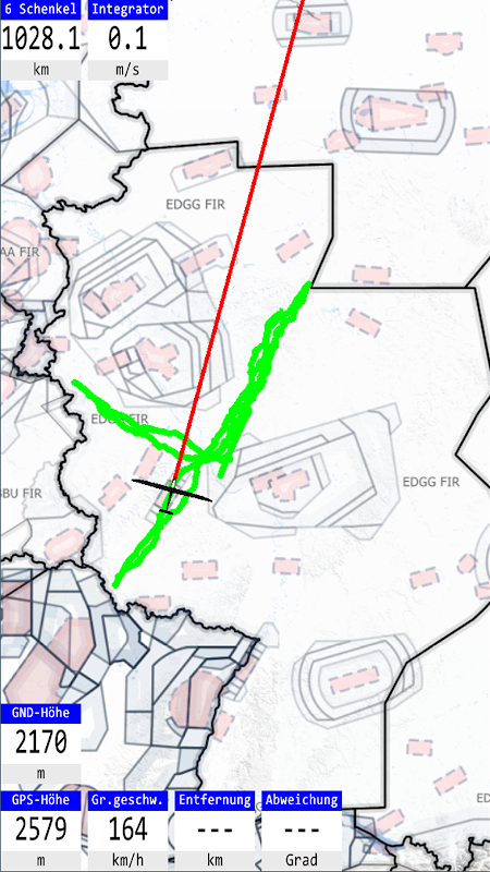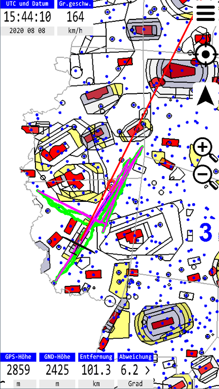 In addition to the digital ICAO chart, the airspace data of the DAeC are also displayed in Germany. In the altitude view, the start and end of the glider flight can be set.