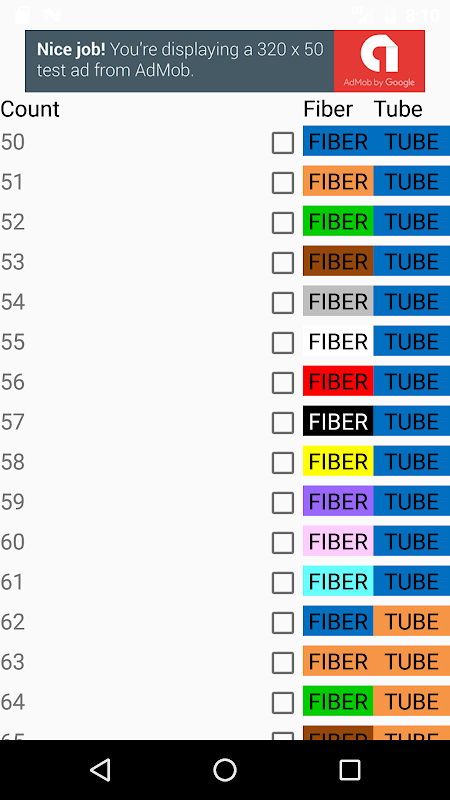 Fiber optic code calculator will show a table of fiber numbers and their corresponding color code. This can handle different starting counts making the app a great time-save in the field of fiber-optic installation. For use with TIA-598 12-count fiber 12-count tube standard. Now available for iPhone https://itunes.apple.com/us/app/fiber-optical-calc/id1396813508?ls=1&mt=8