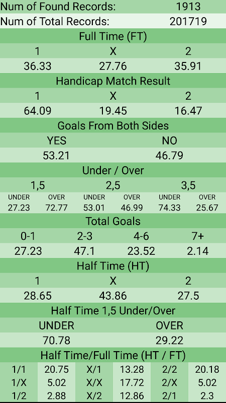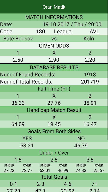 OranMatik is an easy-to-use program that compares the odds of opening matches to the odds of matches played since 2004 and shows the percentage of match results that have the same odds.
