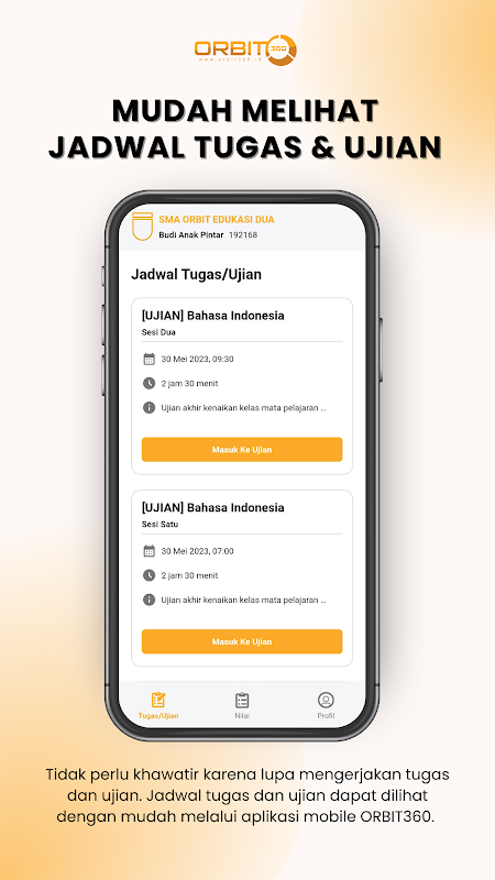 ORBIT360 consists of complete and integrated applications: Learning Management System (LMS), Computer Based Test (CBT), and School Management System (SMS). ORBIT360 also provides student apps, teacher apps, school apps, and parent apps.