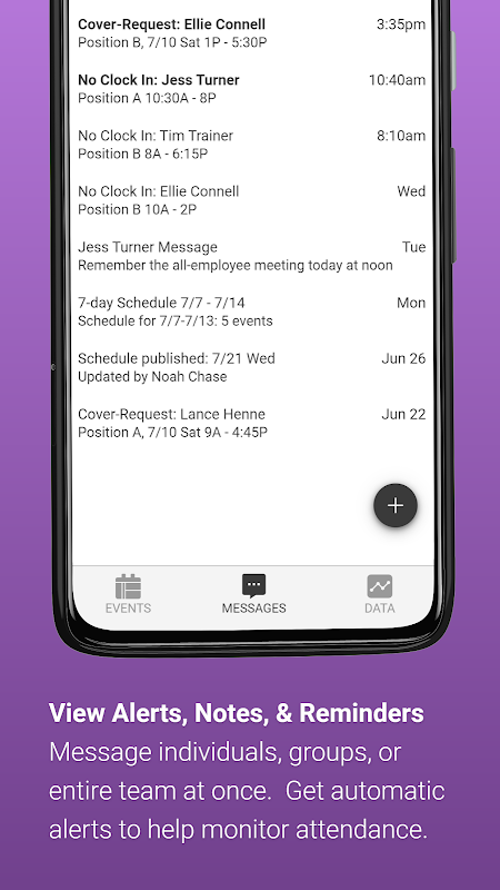 • Fill open shifts by pushing alerts to your team and letting them volunteer to pick up available shifts.